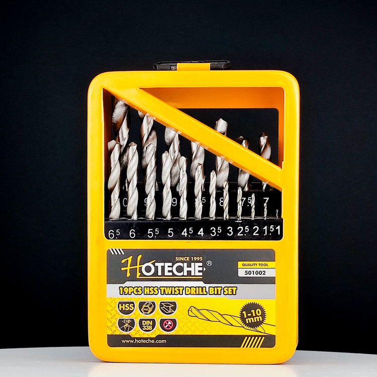 مجموعه مته ۱۹ عددی پیچ خورده مخصوص سوراخ کاری ورق های فلزی اندازه:1-1.5-2-2.5-3-3.5-4-4.5-5-5.5-6-6.5-7-7.5-8-8.5-9-9.5-۱۰ میلی متر