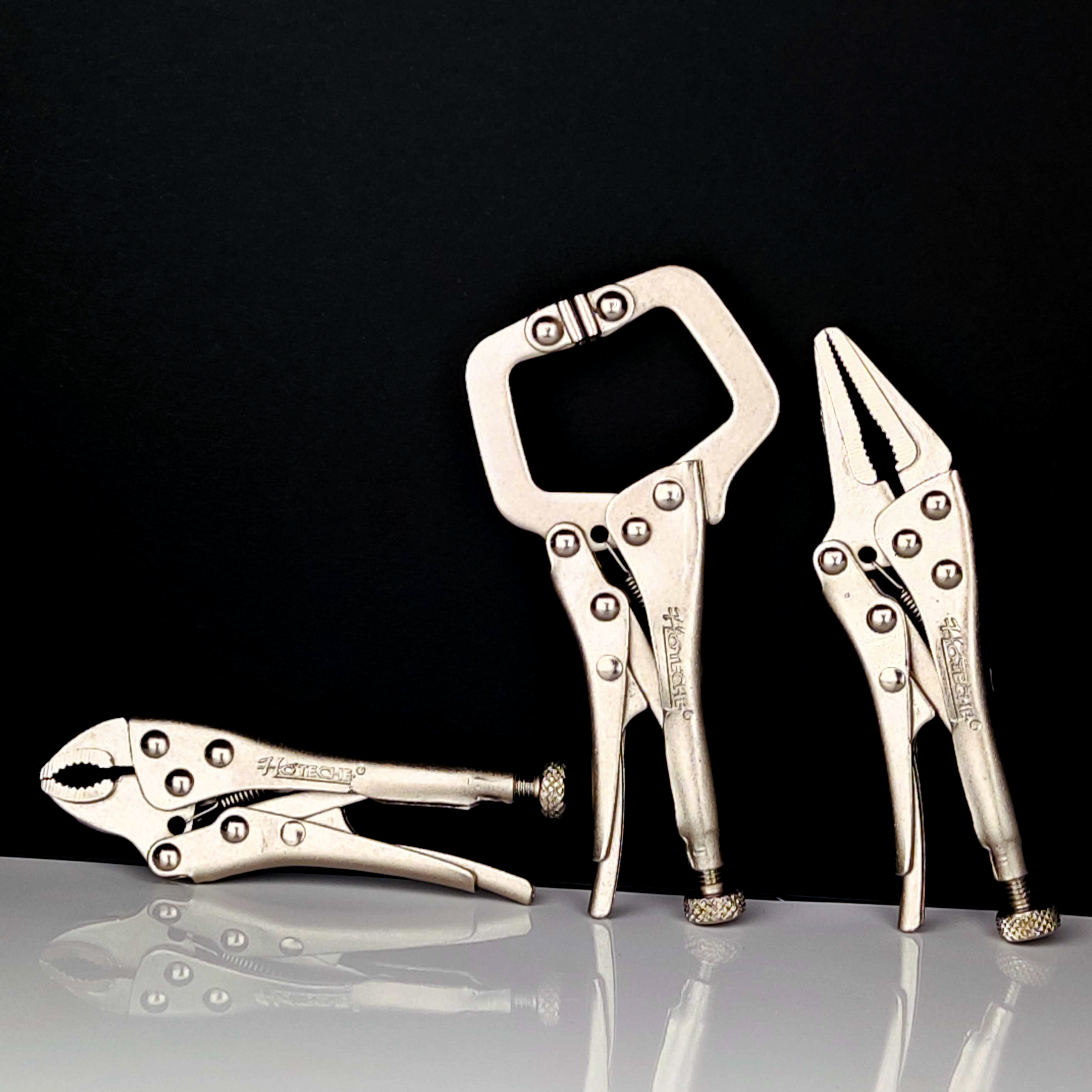 ست انبر قفلی 3 عددی شامل: انبرقفل گیره ای C شکل انبر قفل دمباریک انبر قفلی آلمانی جنس فولاد کربنی روکش نیکل سایز 5 اینچ (مچی)(مینی)