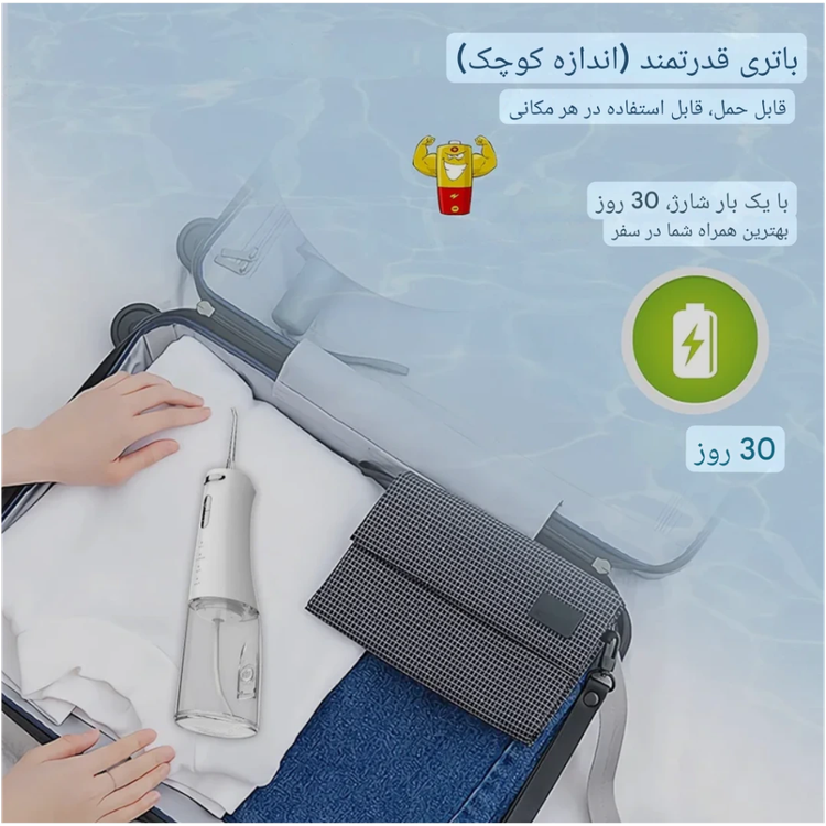 این واتر فلوسر قابلیت حمل و جا به جایی آسان است.