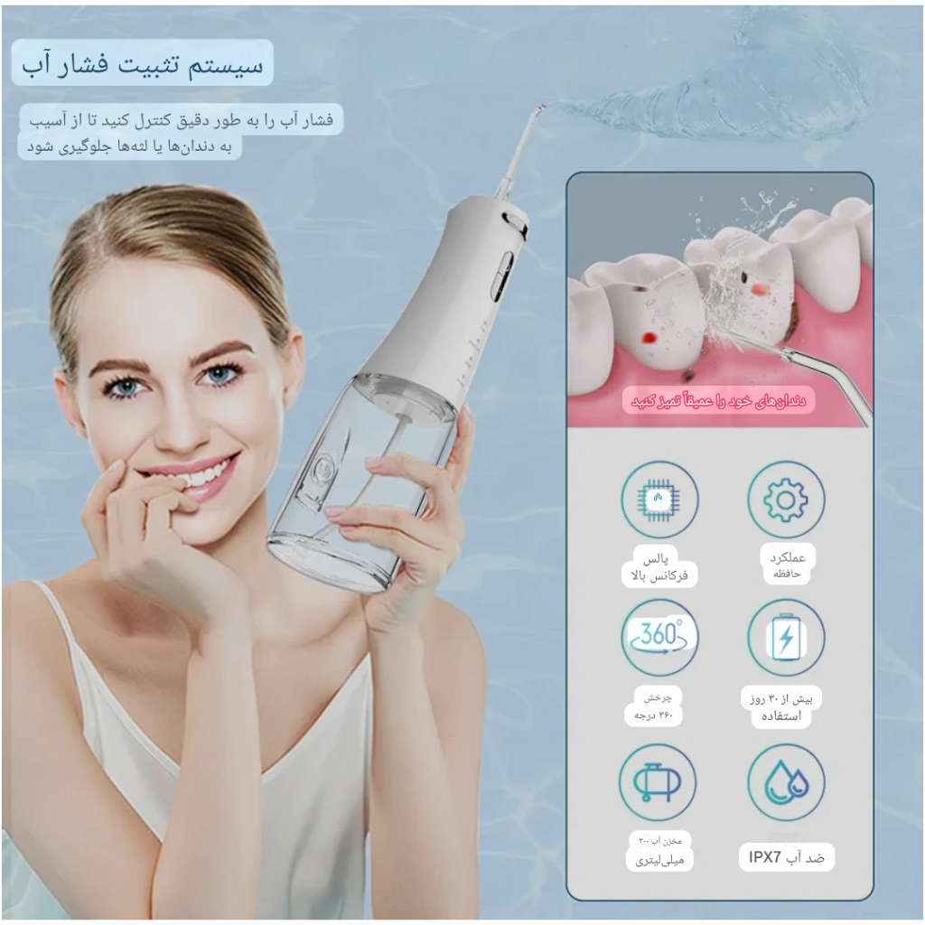 این دستگاه با نام های واتر فلوسر ، واتر پیک ،جرم گیر دهان و دندان ، دهان شوی برقی شناخته میشود.عملکرد این دستگاه شست و شوی دهان از طریق پاشش آب به لثه و دندان ها میباشد.